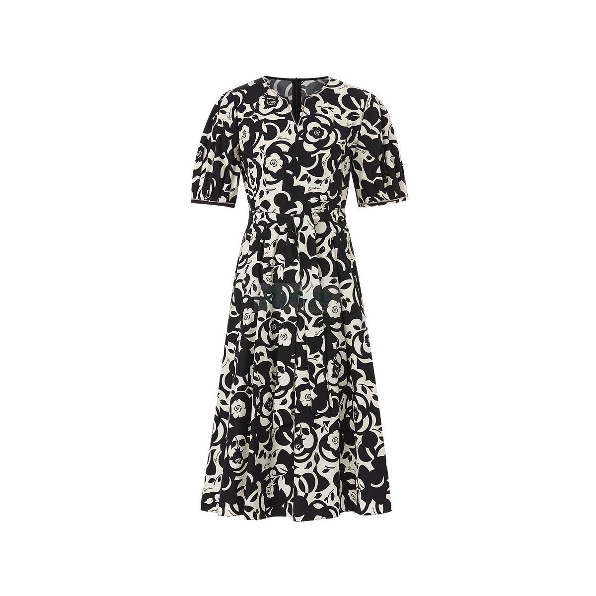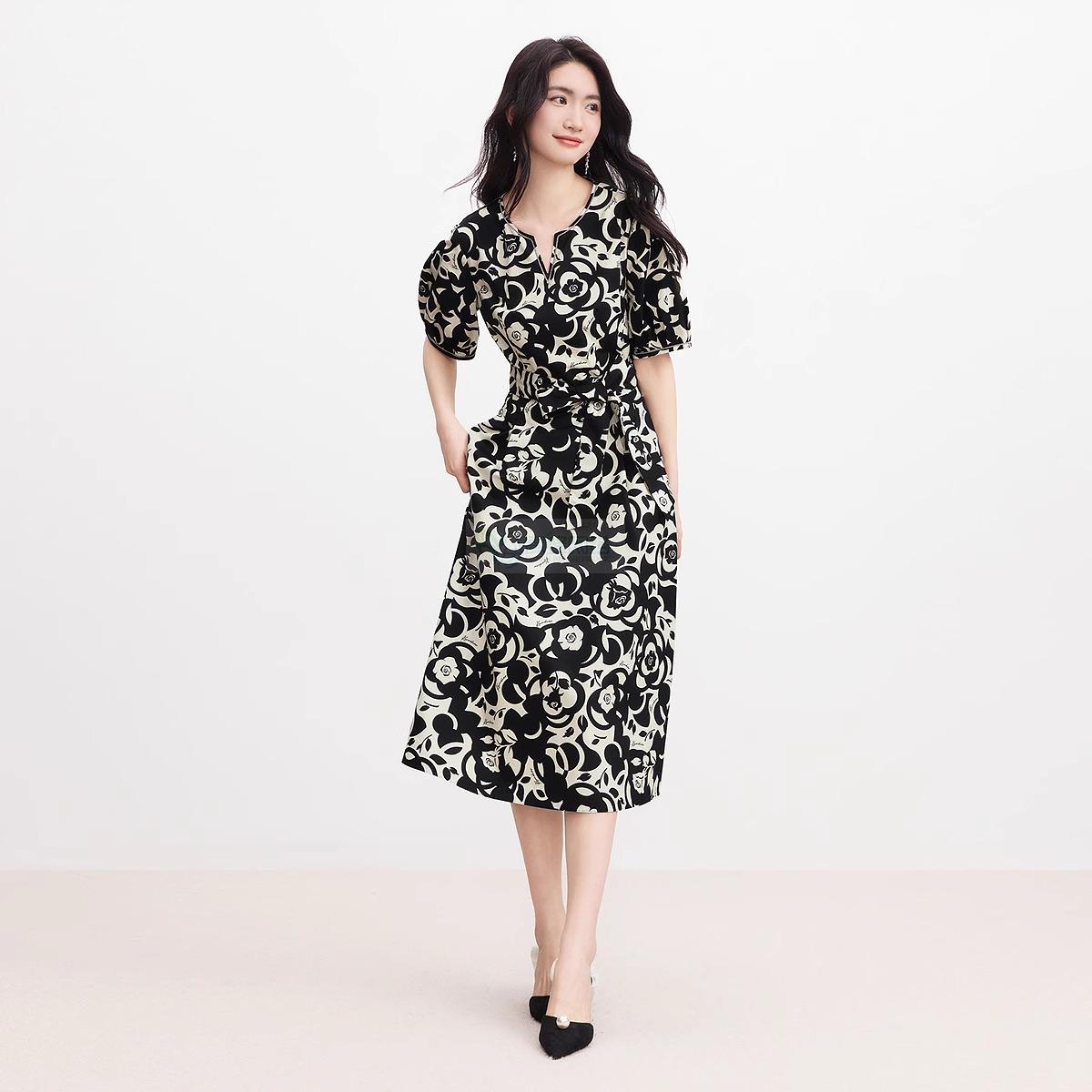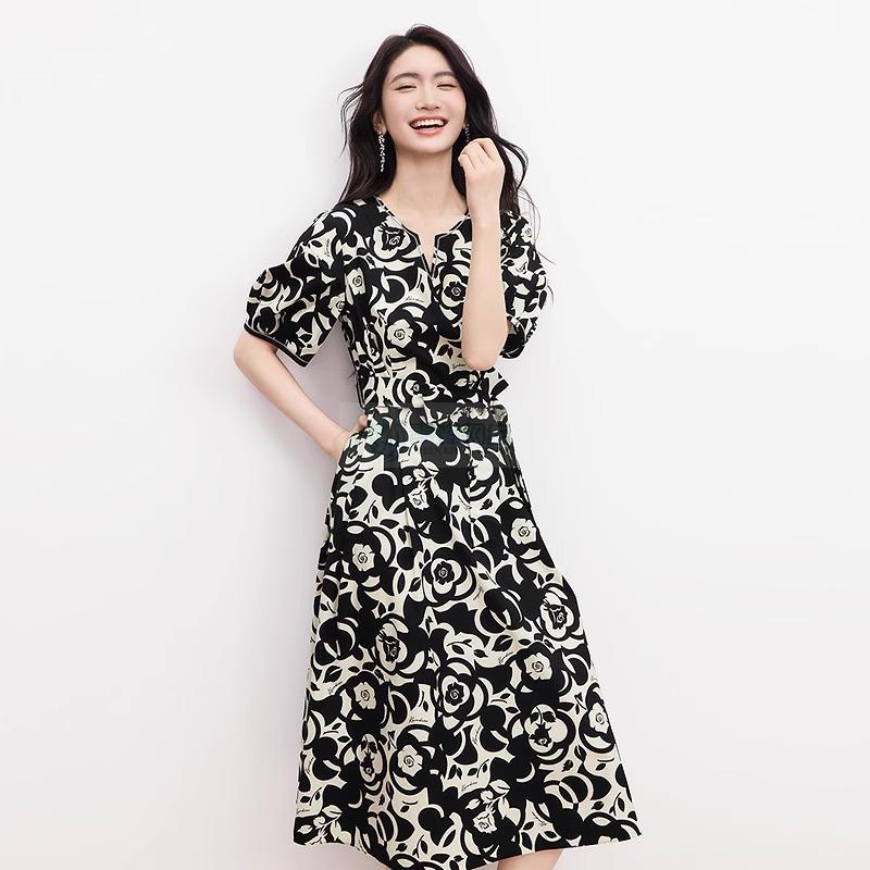 2025年夏季新款阳光棉法式优雅浪漫几何印花短袖连衣裙女