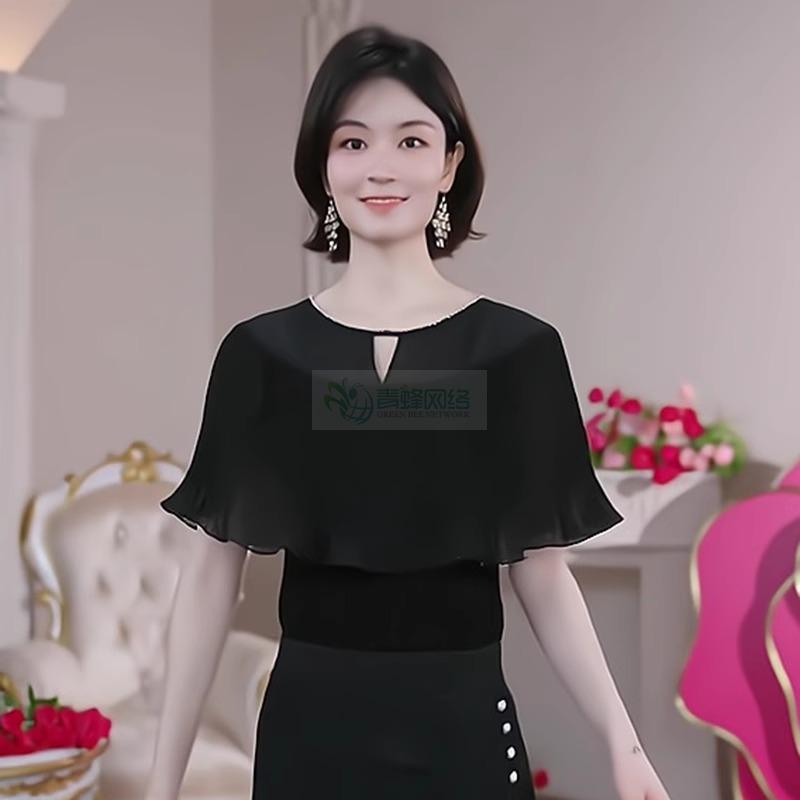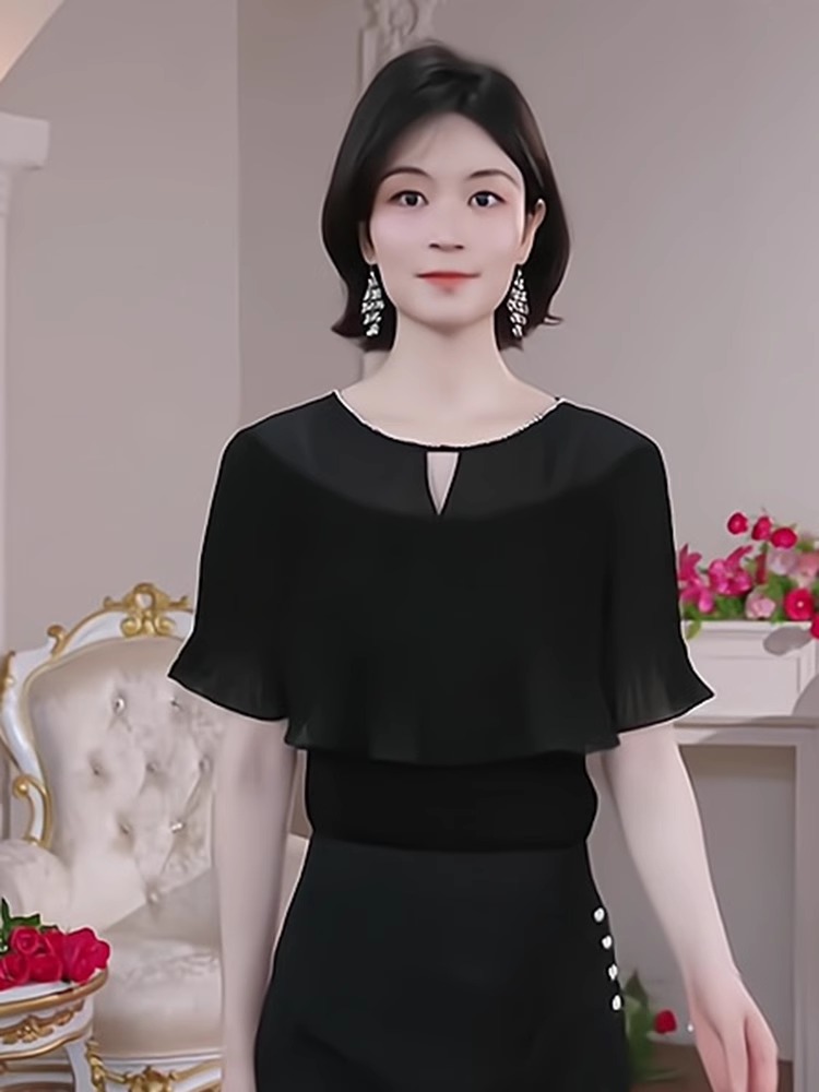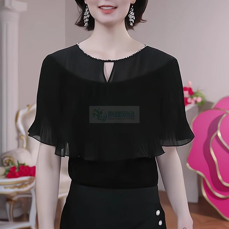 轻奢优雅黑色短袖针织衫女装2025夏季新款荷叶边气质镂空薄款...
