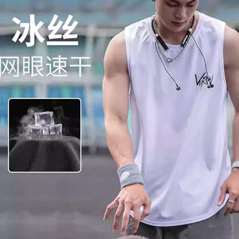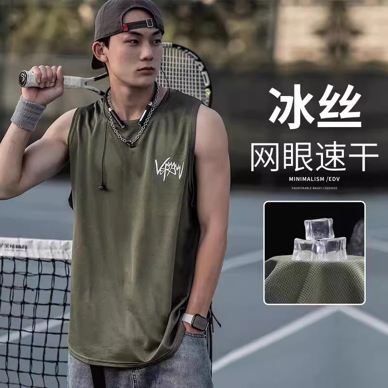 冰丝无袖背心男夏季薄款健身网眼坎肩大码速干篮球运动跑步T恤潮