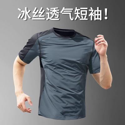冰丝t恤男夏季薄款速干衣短袖运动上衣新款透气半袖体恤跑步衣服