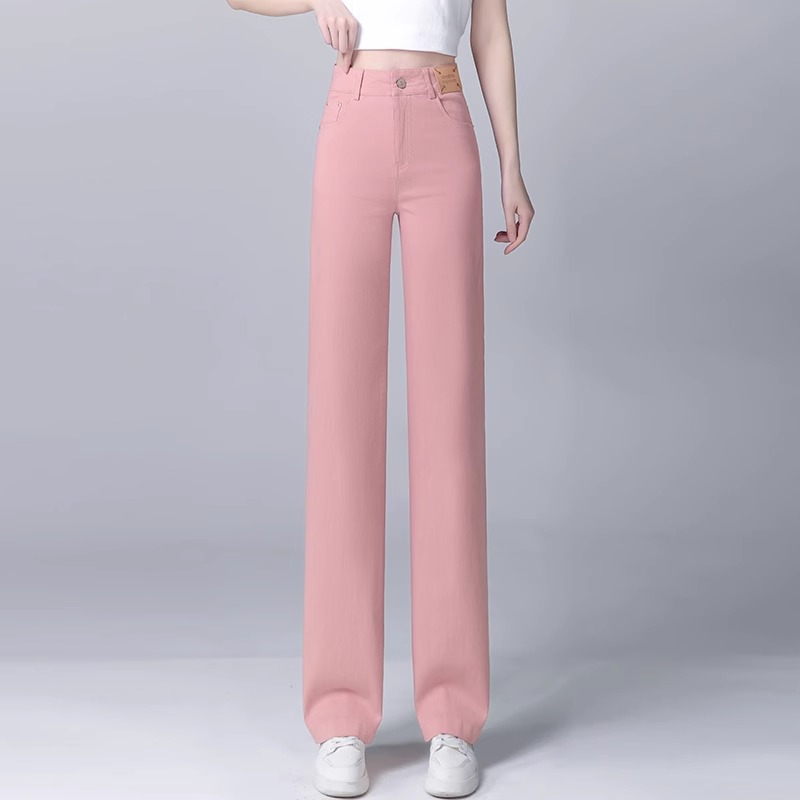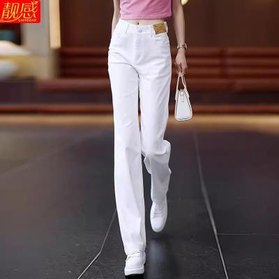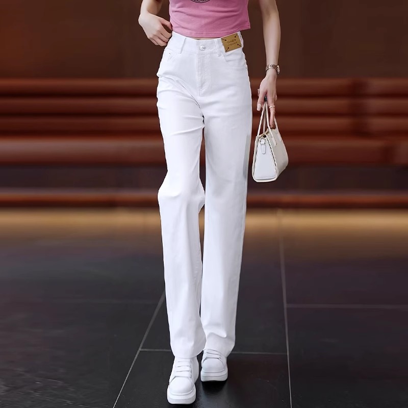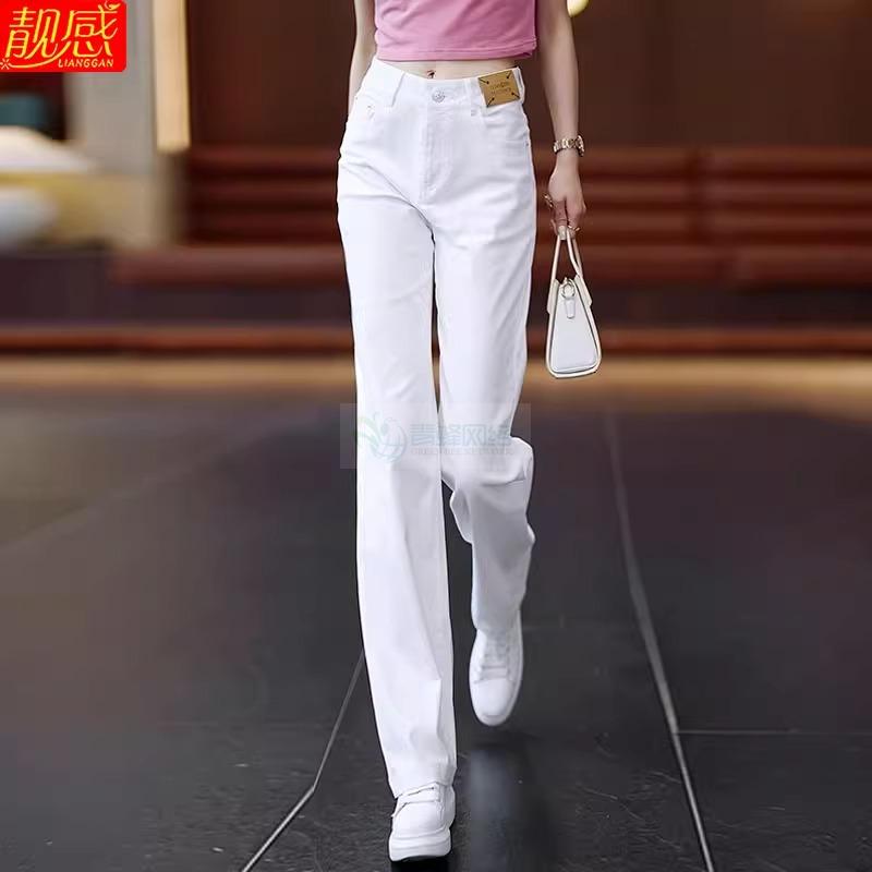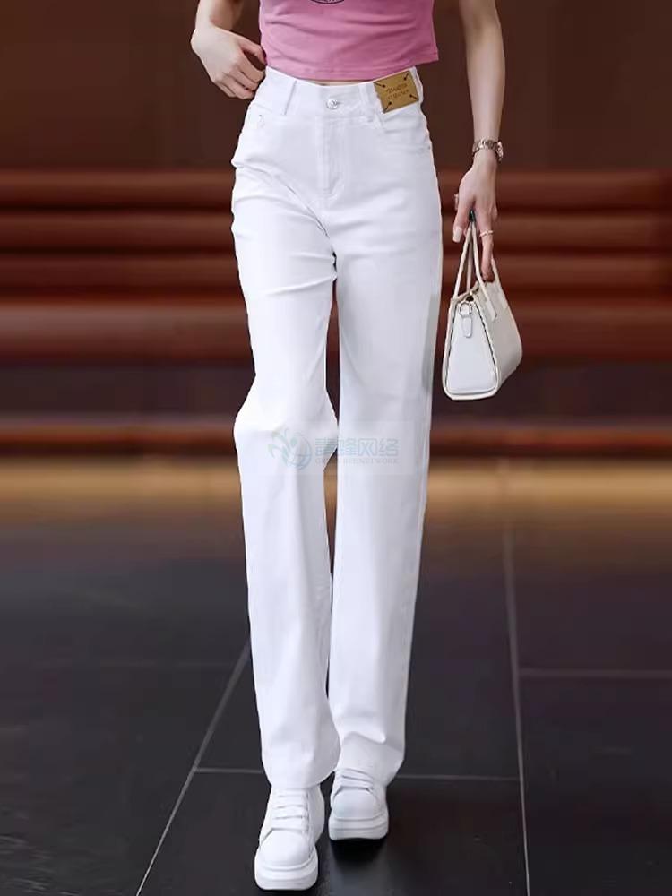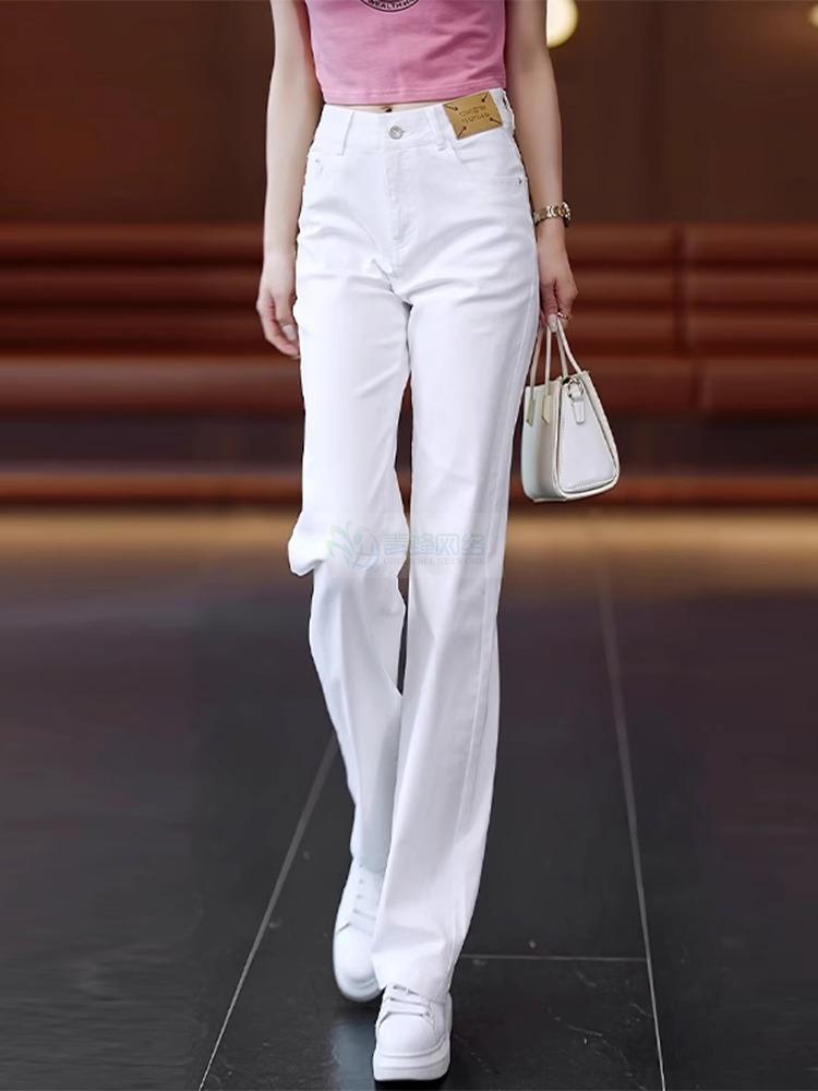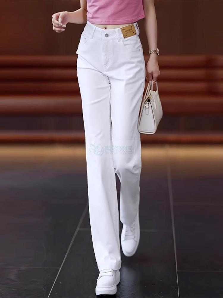 高档纯白色纯棉柔软透气牛仔直筒裤女长裤夏季薄款休闲垂顺阔腿裤