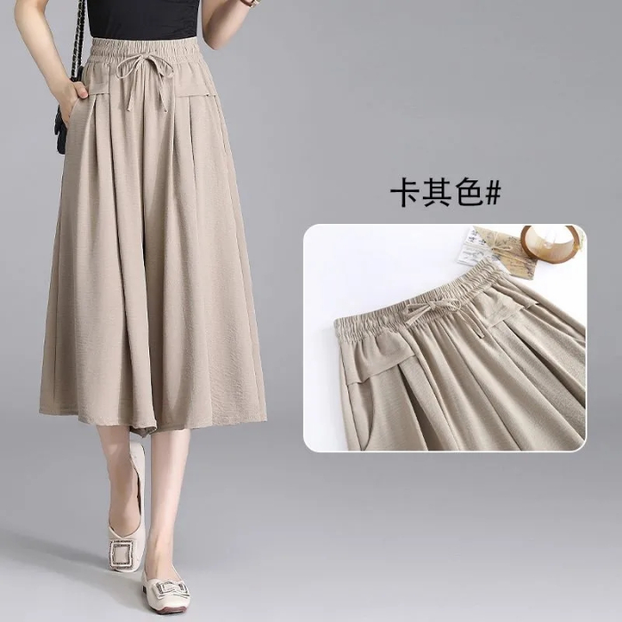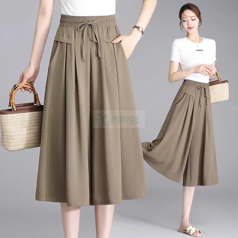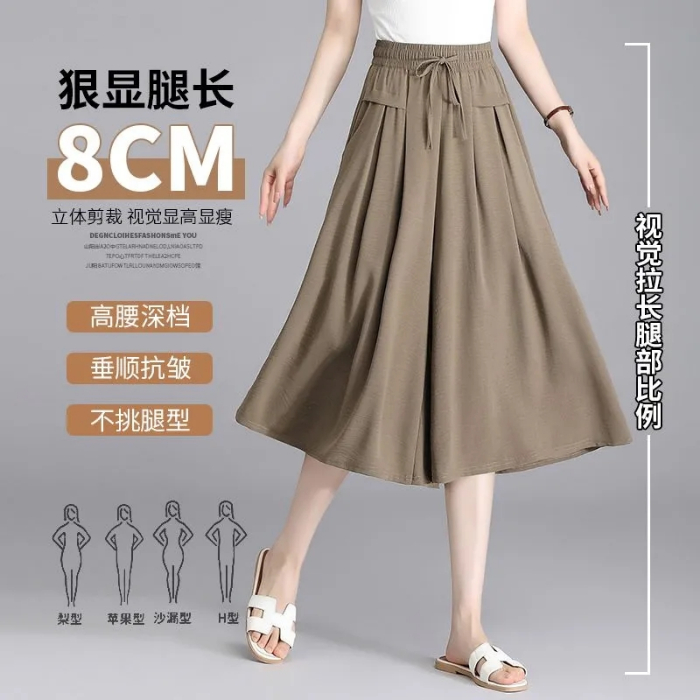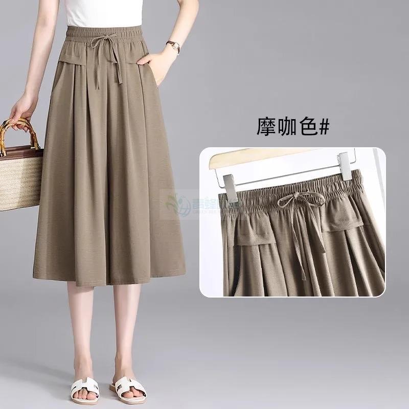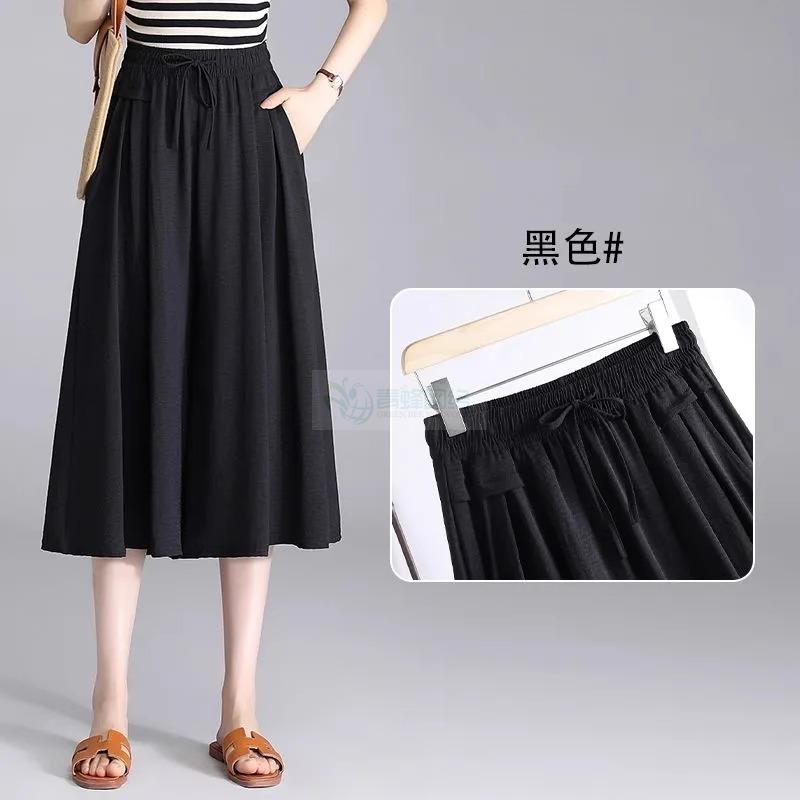 冰丝阔腿七分裤女2025夏季新款高腰垂感韩版休闲裤宽松薄款裙...