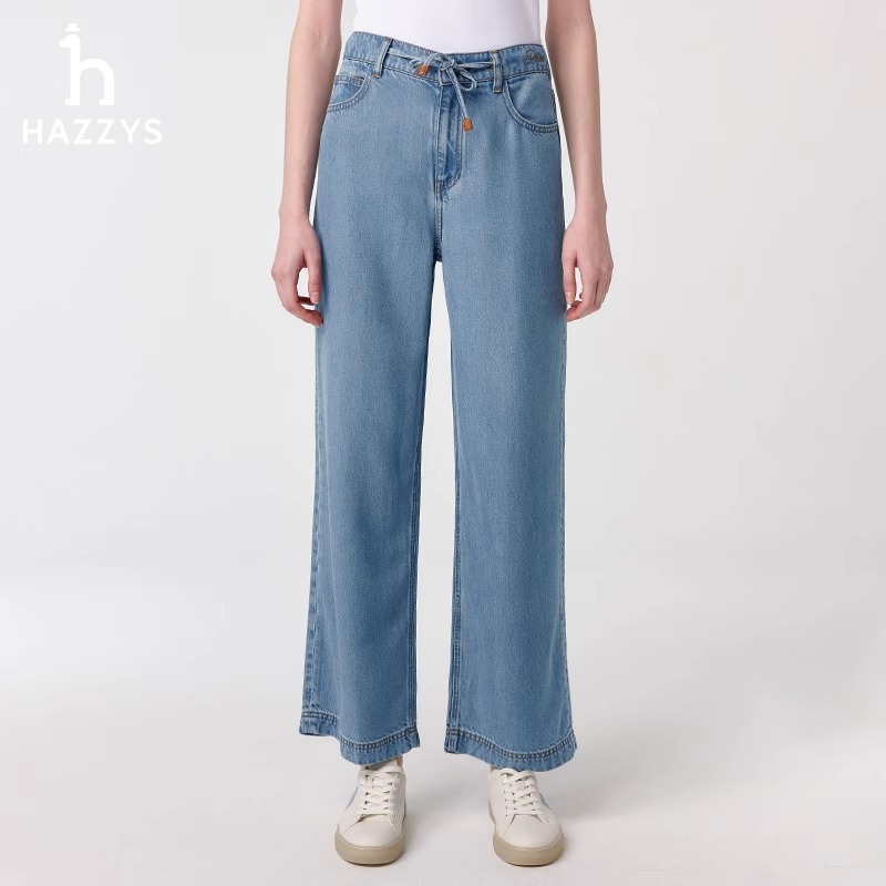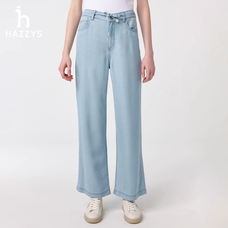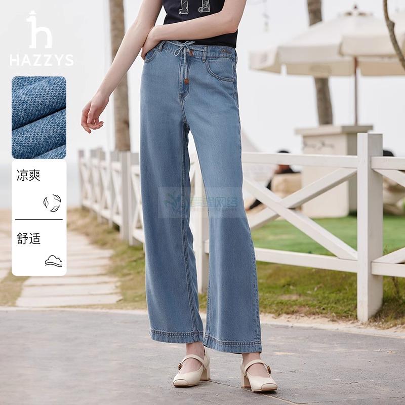 哈吉斯牛仔裤女2025春夏新款舒适宽松直筒裤休闲水洗阔腿裤