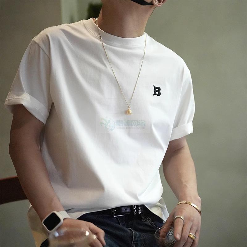 美式潮牌ins夏季新款休闲纯棉短袖T恤男士简约字母刺绣打底体...