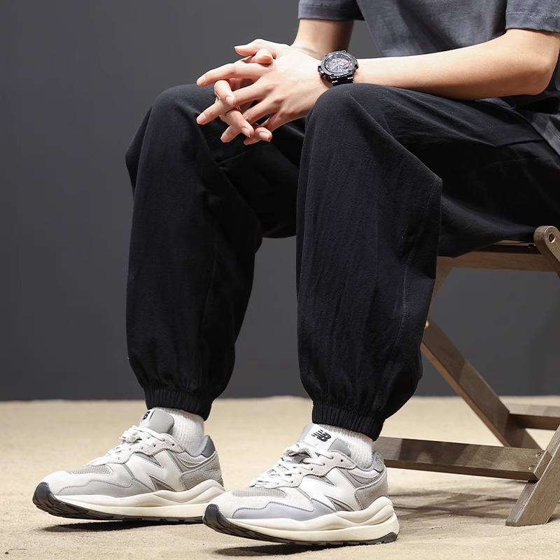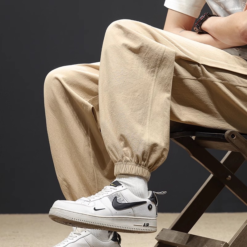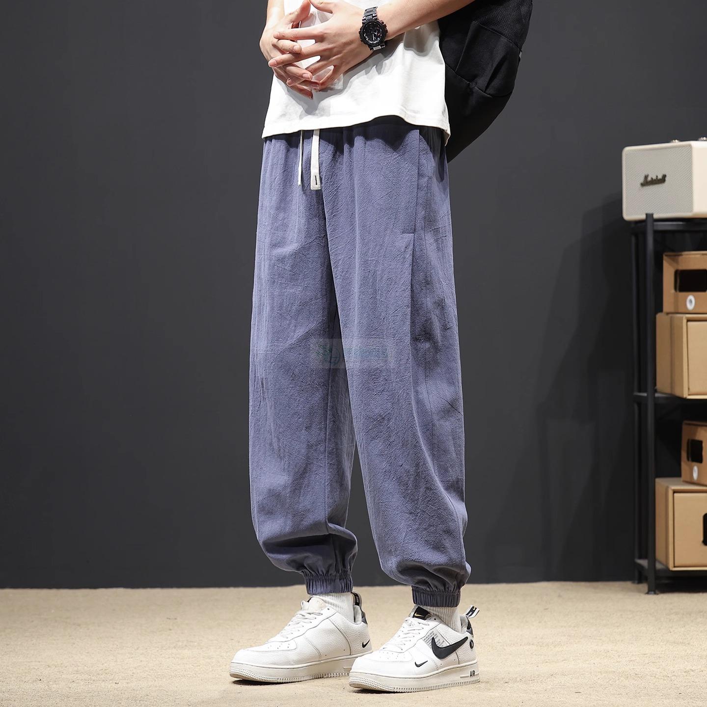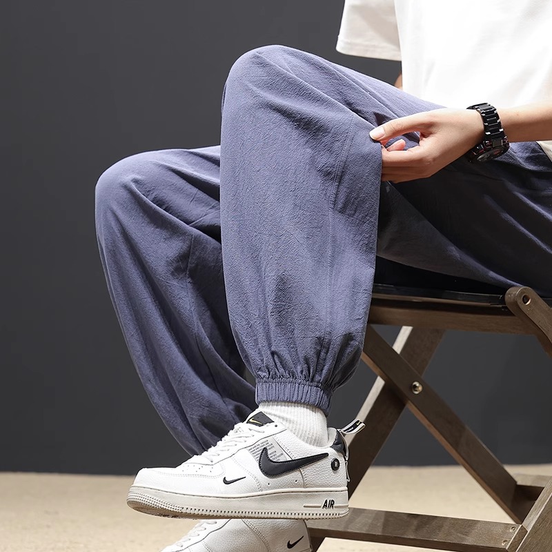 裤子男款夏季薄款透气亚麻裤男士棉麻休闲裤宽松束脚裤纯棉运动裤