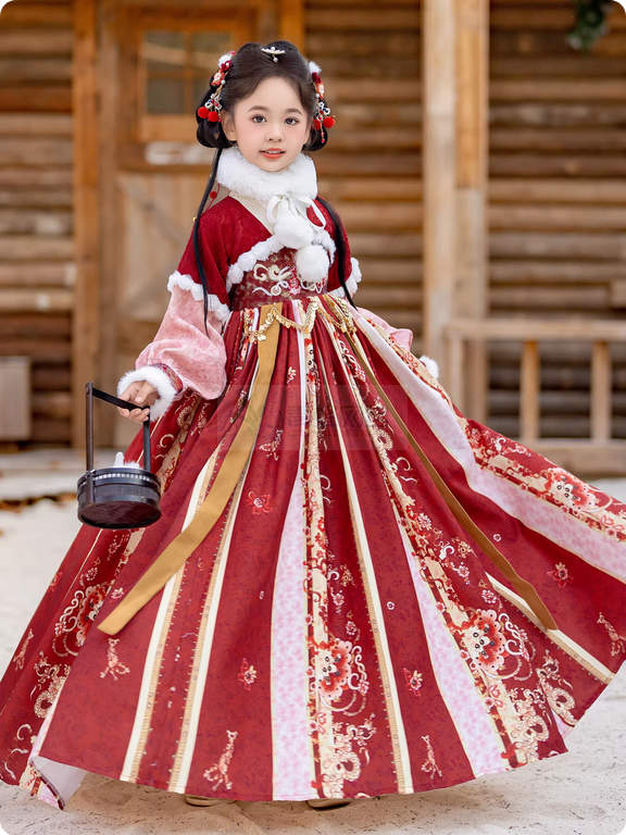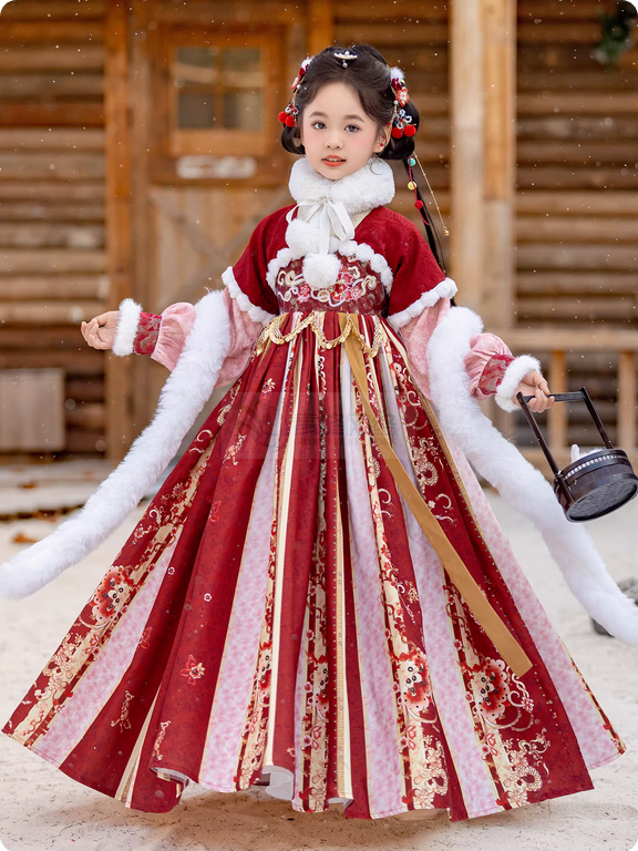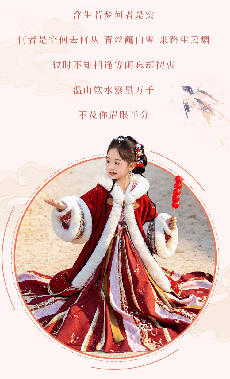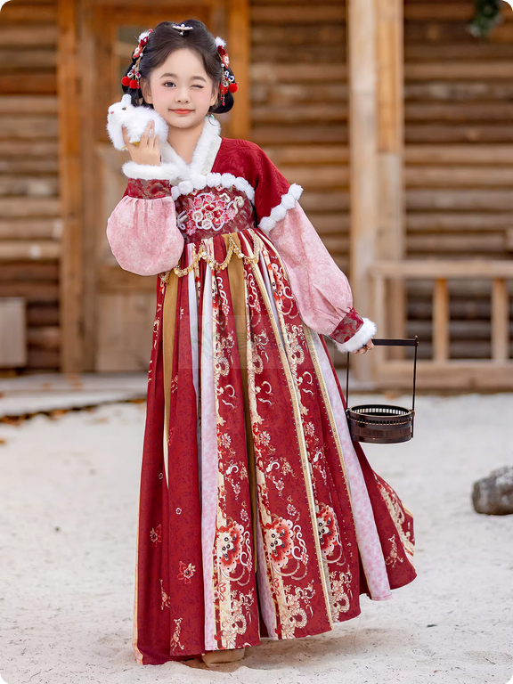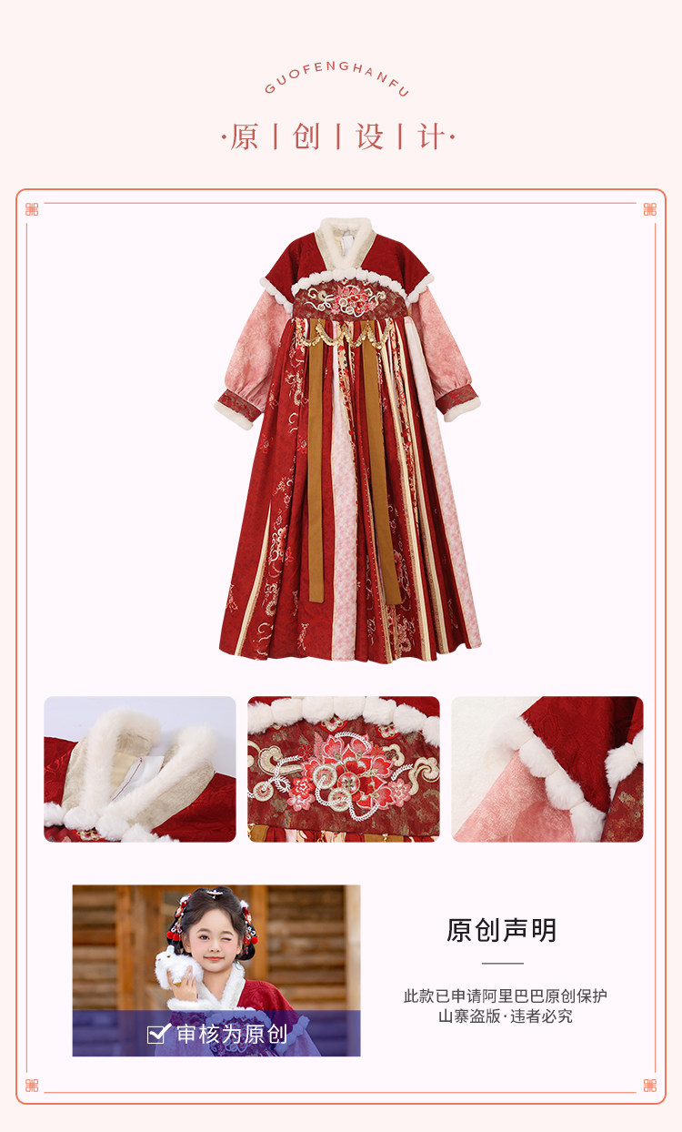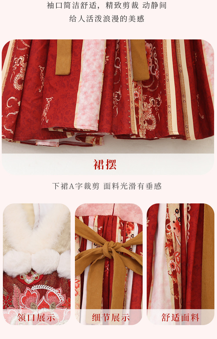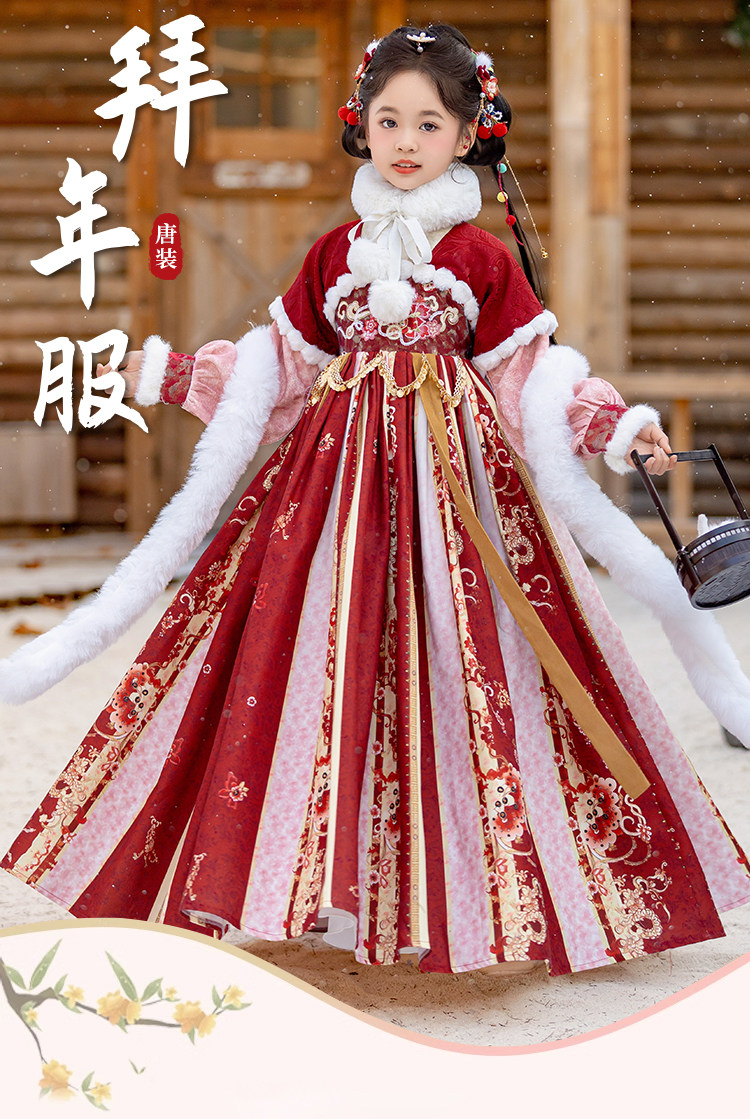 女童汉服冬装加绒加厚中国风连衣裙2026新款女孩冬季古风喜庆...