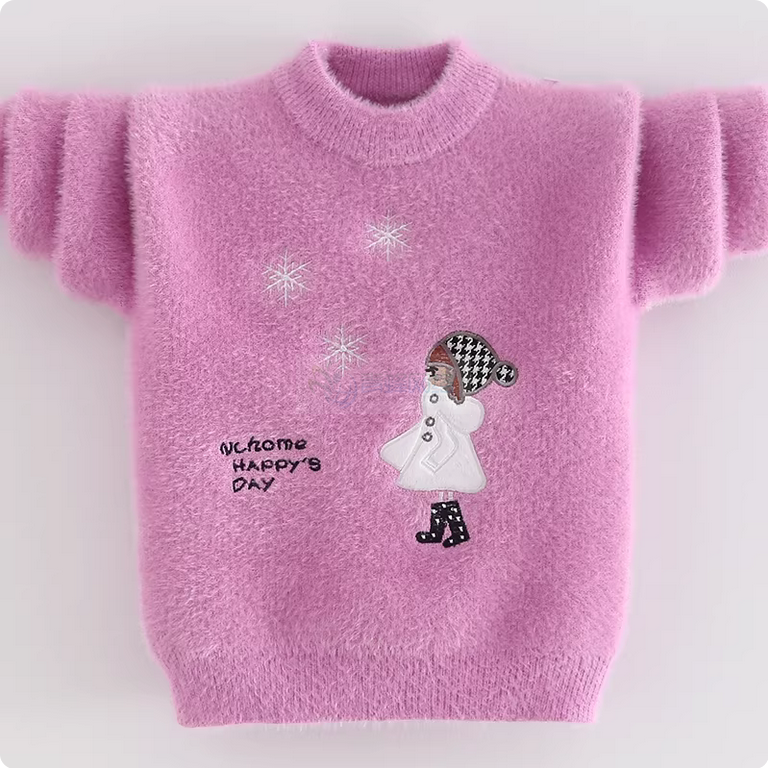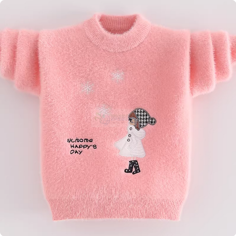 女童毛衣水貂绒冬季加厚加绒2025新款秋冬儿童针织衫女大童打...